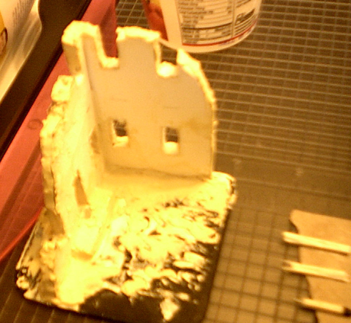 Limiting this ruin to two stories just about the top of the secound story windows makes for a nice size and reduces some of the complications of cutting the foam-core.