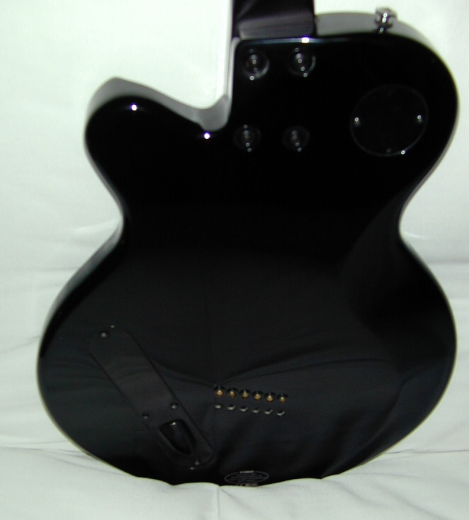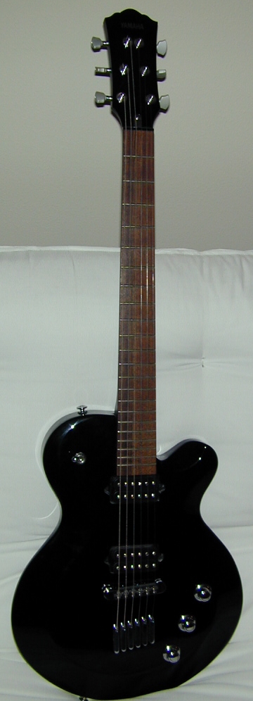 DyeHard's Guitars The Yamaha AES 820 AES820 – which has a 629mm scale, or 24.75 inches. Seymour Duncan pickups. Cool custom tuner stems, and a jack in the rear.