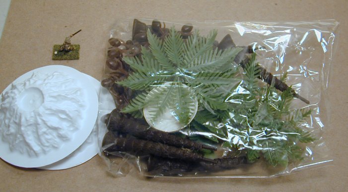 The box contained a bag of parts including soft plastic tree parts and vacu-formed bases in two sizes.